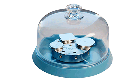 Convenient for temporary benchtop storage of in-process samples. The clear cover is made of ABS plastic and the blue base is made of high impact polystyrene plastic. Shown with Multi Pin Stub Holder #15413 and various pin stubs, available separately